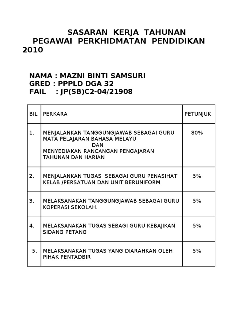 Sasaran Kerja Tahunan Guru Prasekolah Pdf